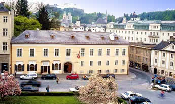 Foto's van Mozart's Wohnhaus, Mozart's Geburtshaus, Mozarteum orchester en de meester zelf: Wolfgang Amadeus Mozart. (1756-1791)